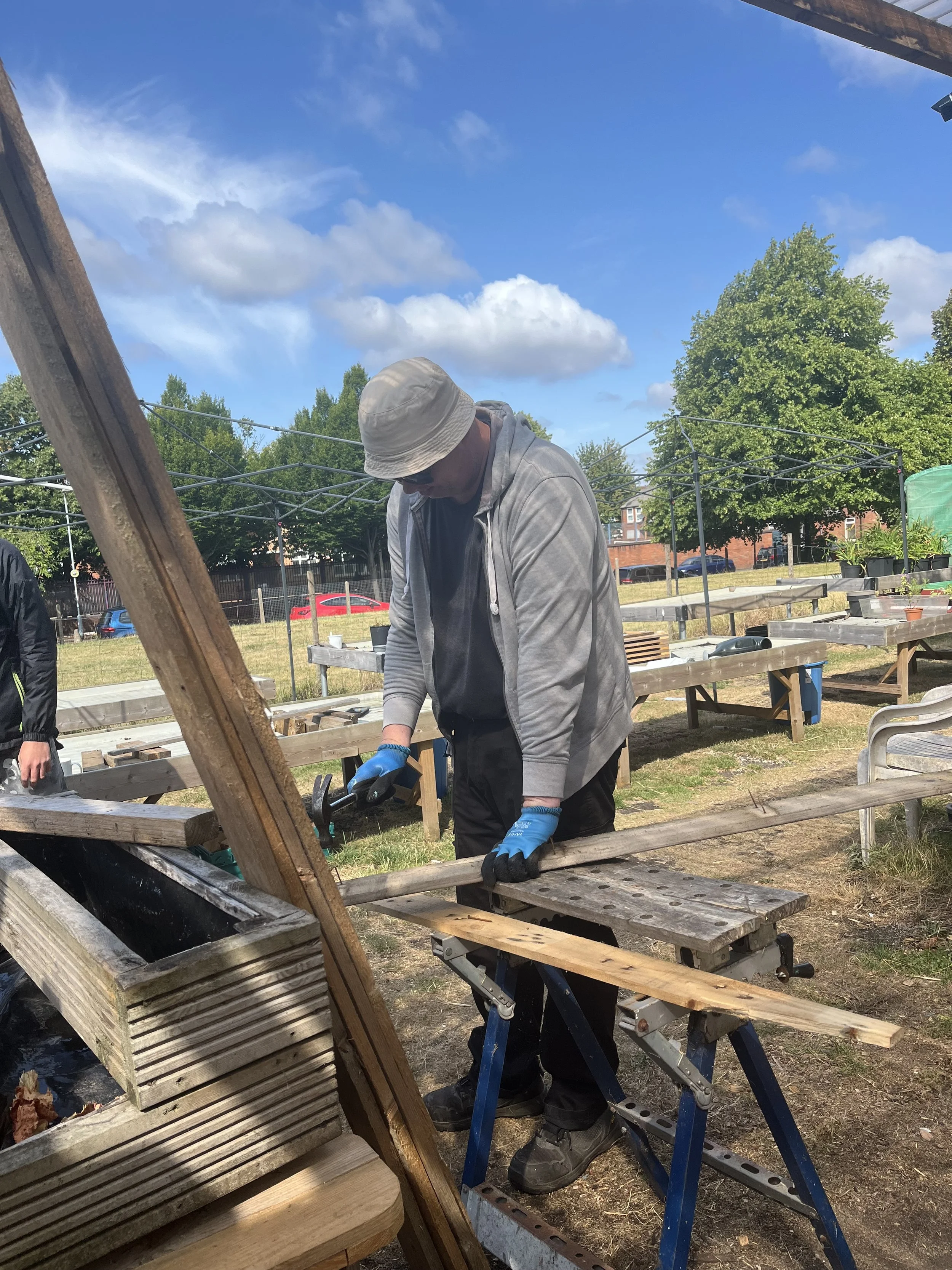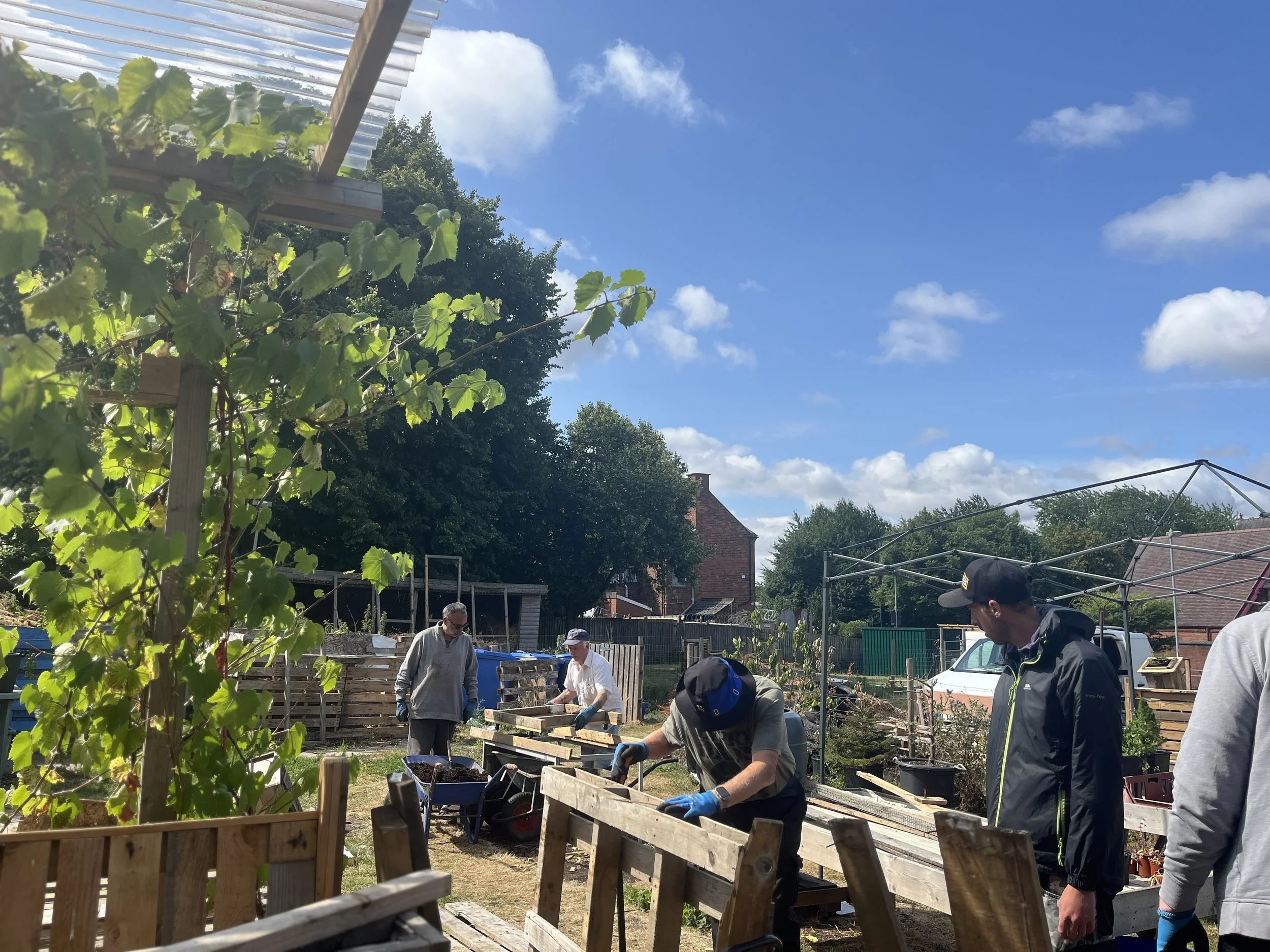 We are a local project based in Birmingham aiming to promote well-being by connecting people and plants through gardening. We are engaged in hot composting – we compost all the school’s food waste and turn it into energy. Food and plant growing, and upcycling of wooden pallets into furniture.
